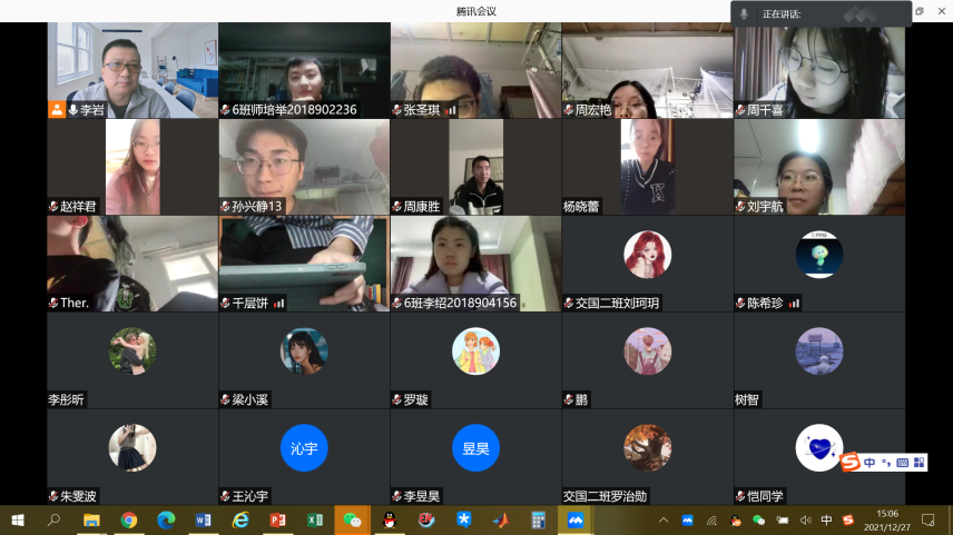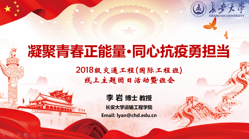 为积极响应学院疫情防控部署,关心学生身心健康,综合交通系统分析研究所李岩教授于20211227日下午15时为18级交通工程国际工程班本科生召开了“凝聚青春正能量·同心抗疫勇担当”线上主题团日活动暨班级班会。