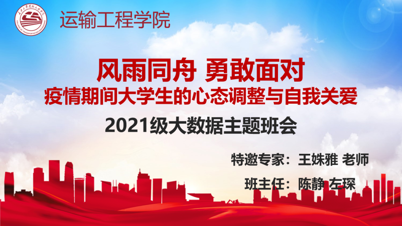 为了响应学院疫情防控部署,关注学生身心健康,舒缓疫情以来的焦虑与紧张心理,大数据所党支部陈静老师和左琛老师于20220101日、20220107日下午为2021级大数据管理与应用专业本科生召开了“抗疫情、迎新年”、“风雨同舟、勇敢面对—疫情期间大学生的心态调整与自我关爱”线上主题班会。特别的,0107日班会邀请了国家二级心理咨询师、西安馨雅心理工作室负责人王姝雅老师,为同学们的心理健康提供更为精细的指导。