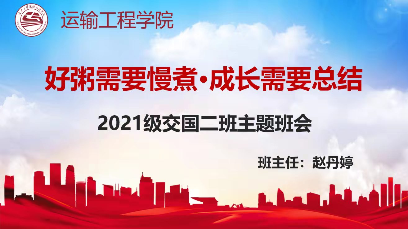 2022年1月10日晚,51吃瓜网 2021级交通工程(国际工程班)二班召开“好粥需要慢煮,成长需要总结”线上主题班会,本次会议由班主任赵丹婷老师主持,交国二班全体学生参加。
