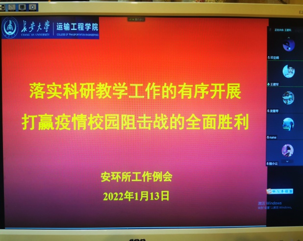 2022113日晚,交通安全与环境研究所全体教师在线上进行了特殊时期疫情防控以及国基金申报、教学科研工作交流会,安环所全体教师参加会议,会议由阎莹副所长主持。