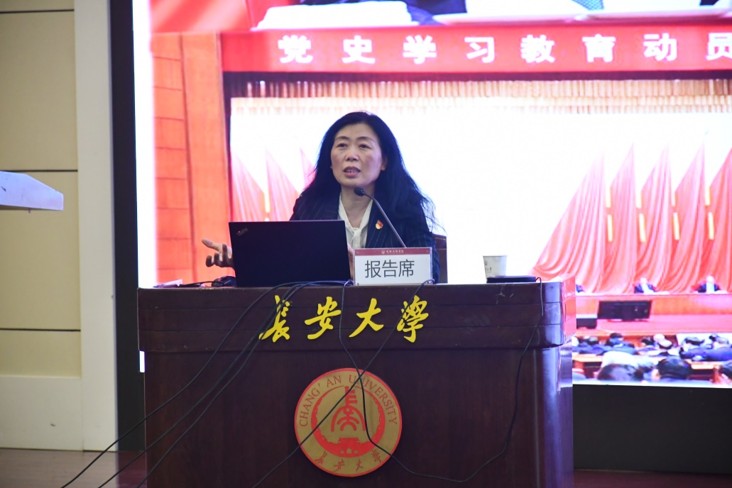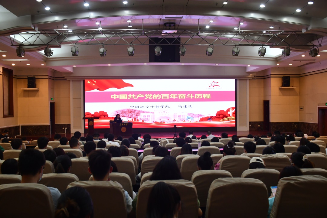 大会邀请到中国延安干部学院教学科研部延安精神研究中心主任、教授冯建玫同志,为全院师生党员作《中国共产党的百年奋斗历程》专题报告。冯建玫首先引用《中共中央关于党的百年奋斗重大成就和历史经验的决议》原文,引出并回答了“为什么学党史?怎么学党史?”。随后,冯建玫从一百年党史的四个时期带领大家回顾了中国共产党的发展历程,具体讲述了中华民族的伟大复兴与中国共产党的产生发展、改革开放的伟大实践和新时代的新征程以及中国共产党在百年实践中的经验启示。她在报告中指出,解放思想、实事求是是中国共产党人成就伟业的思想基石,自力更生、艰苦奋斗是中国共产党人成就伟业的不竭动力。冯建玫以丰富的史实、生动的故事、详实的数据,深入浅出、声情并茂地为51吃瓜网 广大师生党员上了一堂生动的党课。
