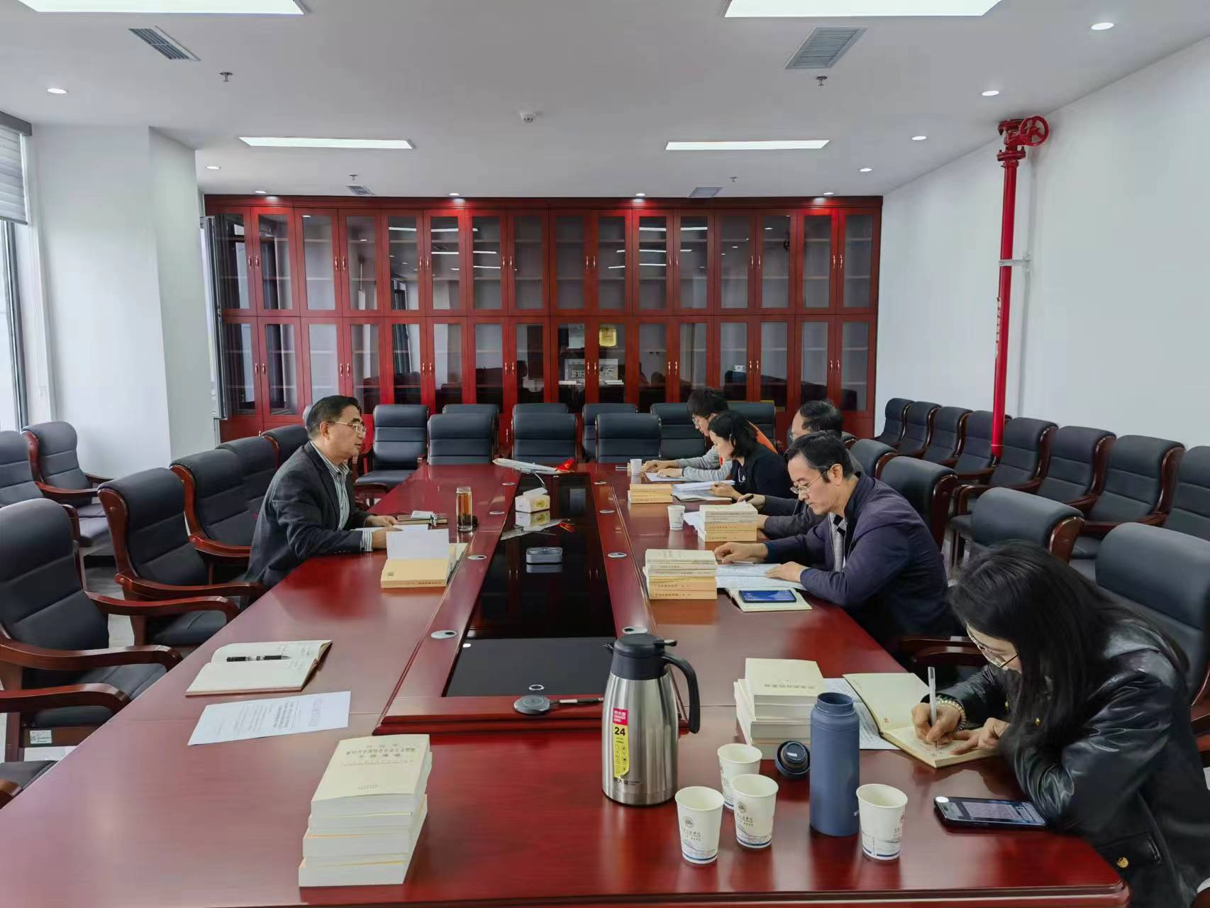 院党委秘书黄海洋传达了学校主题教育领导小组办公室的工作提示,对学校和学院制定印发的主题教育各类工作方案进行说明,并为全体党支部发放了主题教育理论学习推荐参考书目。各党支部书记对近期主题教育有关工作进行了交流。