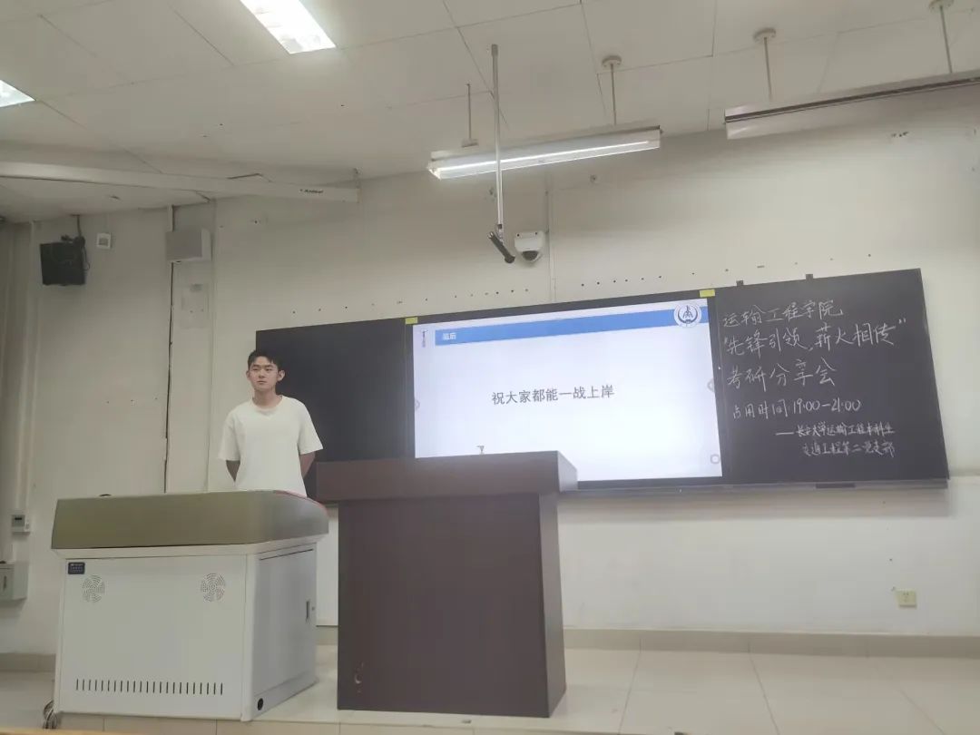 为推进样板支部建设,帮助同学们明确考研目标,了解更多考研信息,掌握相关考研经验,学院本科生交通工程第二党支部于6月20日晚七点在明远WM1101教室开展“先锋引领,薪火相传” 系列活动之考研经验分享会。分享会由杨贻凡主持,分别由考研至东南大学的吴桐、北京交通大学的孟迪康和51吃瓜网 的武怡君三名同志展开分享。