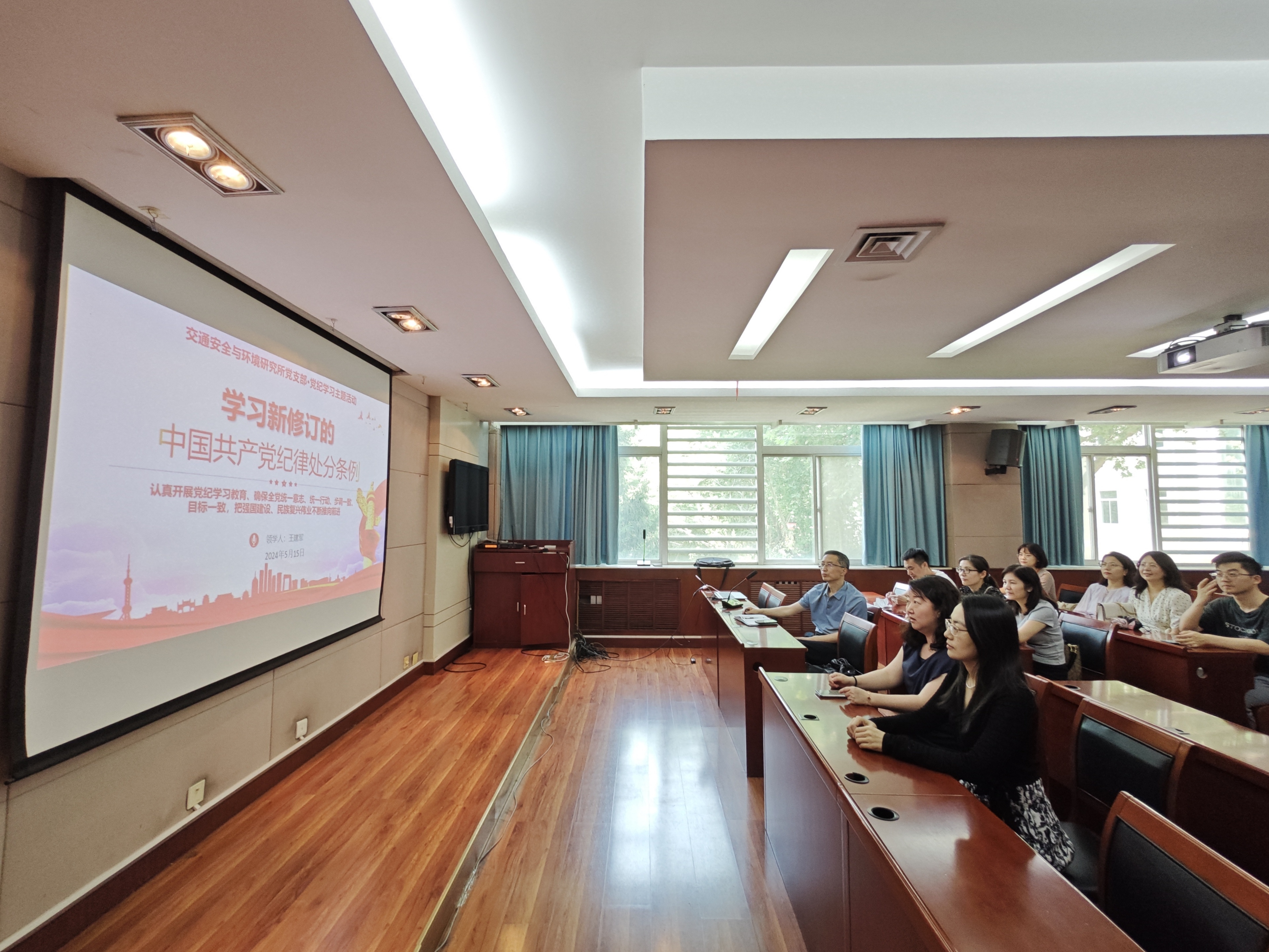 515下午,交通安全与环境研究所党支部在南校区学术交流中心第一会议室召开党员大会,进行党纪学习教育,会议由支部书记阎莹主持,学院党委委员、副院长王建军及全体党员参加了此次会议。