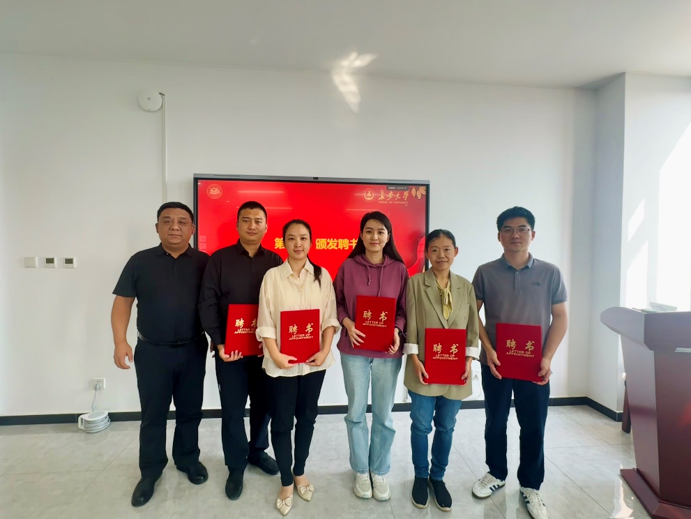 史少鹏为2024级本科生班主任代表颁发聘书,并合影留念。