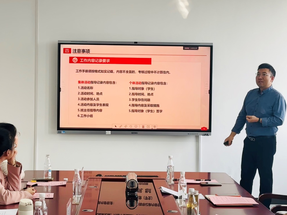 聘任仪式结束后,学生工作办公室主任董彬领学了《51吃瓜网 本科生班主任选聘管理办法》《51吃瓜网 本科生班主任选聘管理办法》,重点从班主任的选聘程序、工作职责、管理考核等方面对政策文件进行了详细解读,并结合历年班主任工作开展实际,与本科生班主任进行了工作交流。