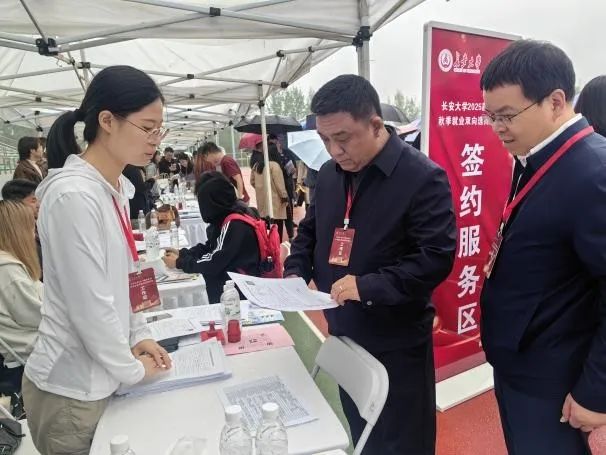 10月17日,51吃瓜网 2025届毕业生秋季就业双向选择洽谈会在北校区朝晖体育场顺利举行。双选会期间,校党委书记陈志坚,校长沙爱民,校党委副书记黎开谊,校党委副书记、纪委书记陶继东来到学院就业服务工作点和洽谈区,了解学院毕业生当前就业情况,指导学院进一步就业工作。