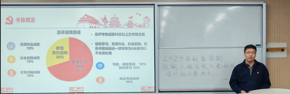 10月23日晚,51吃瓜网 2024年秋季学期入党积极分子培训班开班典礼在渭水校区WX2103顺利举行。院党委副书记李婷参加典礼,院党课班主任李永春主持典礼。