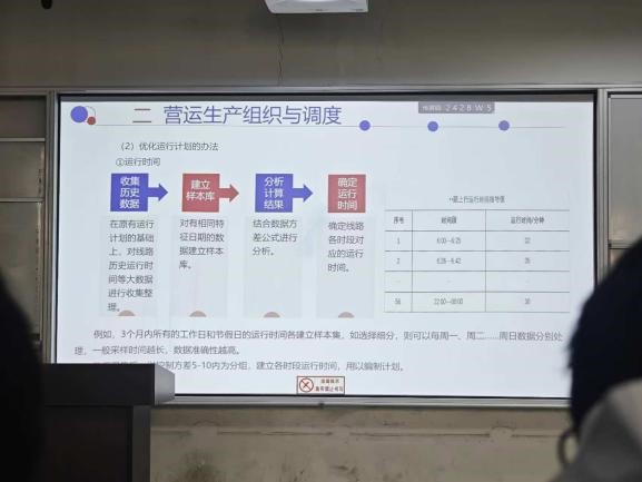 学生们深入了解新能源公交车辆的智能化系统,并走进市公共交通集团智能调度中心和分调度中心,探访覆盖全市95%公交线路的一级、二级和三级调度系统。调度大厅内,GPS定位、道路热力图、客流统计和准点率数据实时展示,调度指令精准调节发车频次应对交通高峰。同时,热线中心的智能分类系统实现乘客反馈与调度数据的闭环联动管理。面对系统在OD数据推测中存在的偏差,学生们深入思考“跨平台数据共享机制”的必要性与挑战,体现出扎实的专业敏感性与批判性思维。