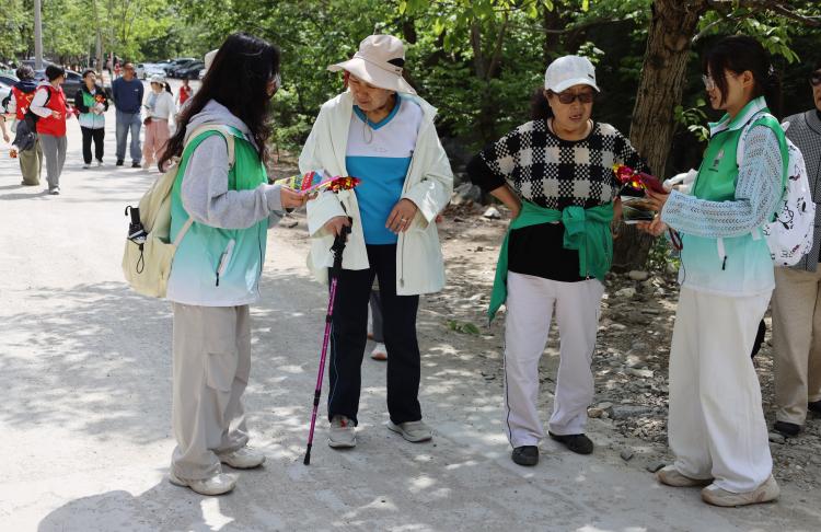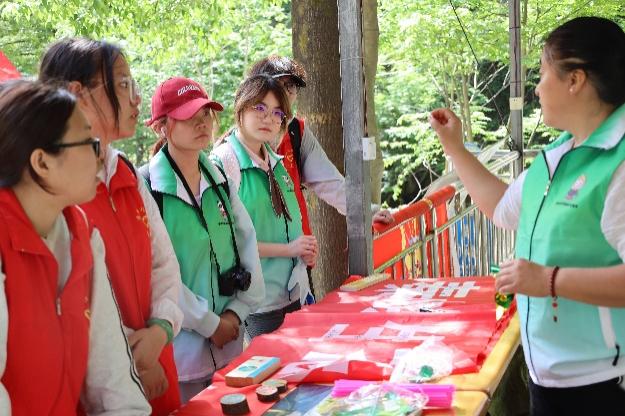 垃圾清理工作完成后,志愿者们稍作休整后来到秦岭生态环境保护活动的宣传现场,现场展示区域摆放着精心布置的展区、互动区域,负责人详细介绍了《陕西省、西安市秦岭生态环境保护条例》的立法背景、主要内容、保护措施以及法律责任等。随后,大家化身生态保护宣传员,向过往游客发放精心准备的宣传手册与手工风车,耐心细致地讲解秦岭环保知识,倡导“无痕山林”理念。“垃圾入桶,对于我们来说只是举手之劳,但是这一俯身投放的动作,却是推动生态环境保护的关键一步”志愿者向游客解释道。不少游客受到感染,主动加入清理队伍,共同维护秦岭的生态环境。