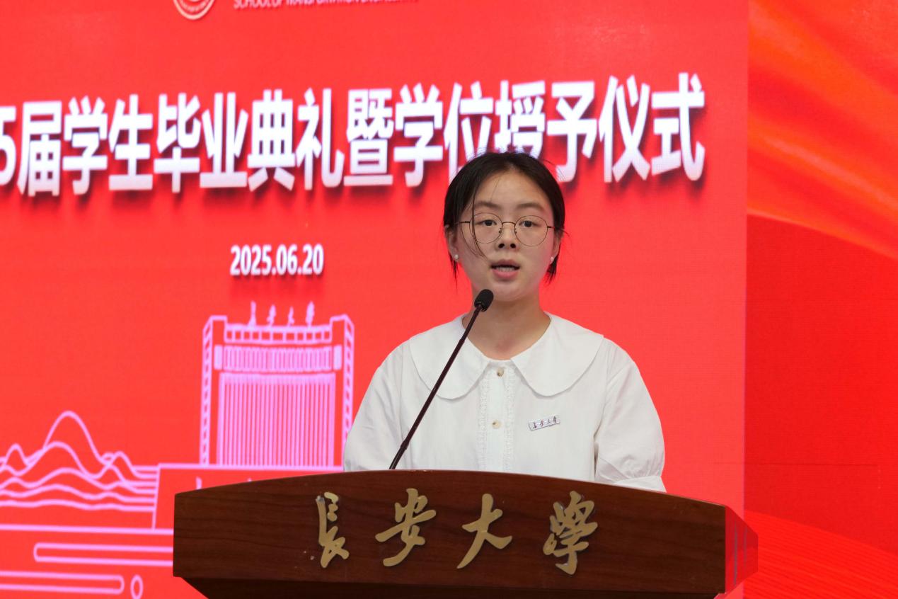 在校生代表鲁雨晗向即将启程的2025届学长学姐们送上最真挚的祝福,未来将以毕业生为榜样,精勤求学,躬身实践,敢为人先,努力提升自我,为母校争光!