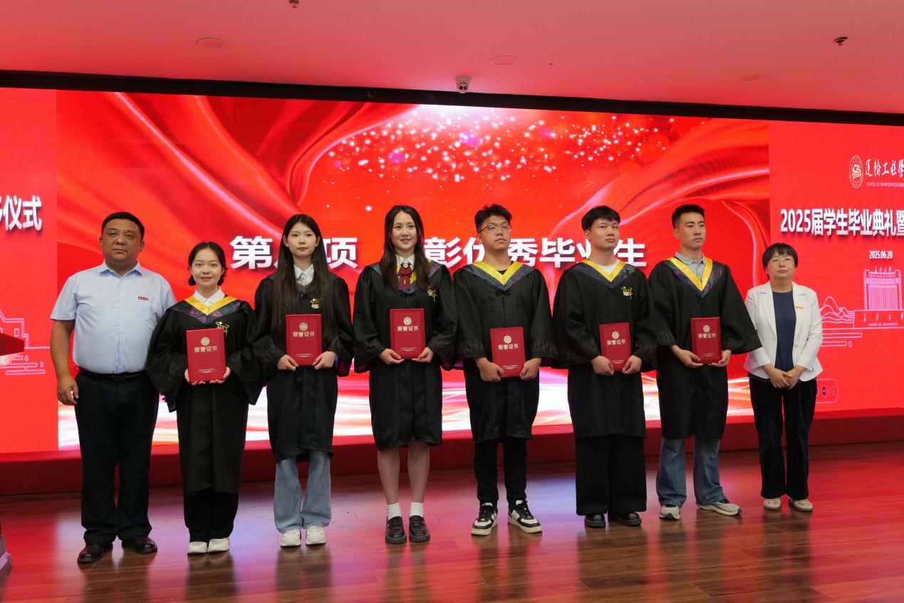 为表彰先进、树立典型,学院对优秀毕业生代表进行表彰。史少鹏,吴喜梅为本科优秀毕业生代表颁发荣誉证书;柏强,王宁为研究生优秀毕业生代表颁发荣誉证书。希望全体毕业生以优秀学子为榜样,在新的征程上永葆初心、勇担使命。