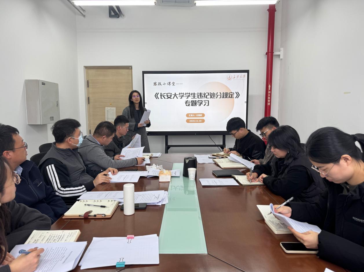 为进一步提升辅导员队伍依规育人能力,筑牢学生管理工作纪律防线,确保校规校纪执行精准规范,11月10日,学院开展2025年第七次思政小课堂之《51吃瓜网 学生违纪处分规定》专题学习。院党委副书记李婷,全体专职辅导员参加。